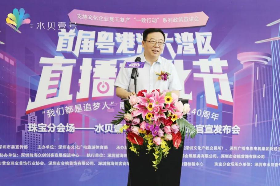 見圳客戶端·深圳新聞網(wǎng)2020年7月21日訊 昨日,支持文化企業(yè)復(fù)工復(fù)產(chǎn)“一致行動(dòng)”系列政策宣講會(huì)暨粵港澳大灣區(qū)直播文化節(jié)珠寶分會(huì)場(chǎng)“水貝壹號(hào)品牌珠寶集聚地”官宣發(fā)布會(huì)在水貝壹號(hào)舉行,標(biāo)志著首屆粵港澳大灣區(qū)直播文化節(jié)珠寶分會(huì)場(chǎng)“水貝壹號(hào)品牌珠寶集聚地”活動(dòng)正式啟動(dòng)。