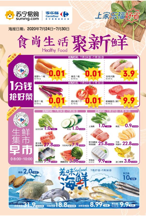 除了消費(fèi)可獲贈(zèng)運(yùn)費(fèi)券以外,線上消費(fèi)質(zhì)優(yōu)價(jià)廉同樣可期。針對迅速崛起的線上消費(fèi)群體,家樂福近日圍繞消費(fèi)者一日三餐的需求,在小程平臺(tái)正式上線“生鮮菜場”頻道,消費(fèi)者只需動(dòng)動(dòng)手指,千余款精選優(yōu)質(zhì)生鮮商品即可以最快30分鐘登上消費(fèi)者餐桌。