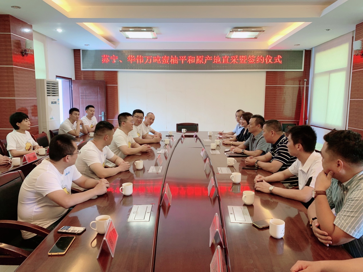 8月26日,蘇寧家樂(lè)福中國(guó)區(qū)生鮮采購(gòu)總監(jiān)孫樂(lè)超、水果組總監(jiān)孟碩、華南區(qū)采購(gòu)總監(jiān)周益明,以及蘇寧易購(gòu)水果組采銷總監(jiān)戴躍等一行來(lái)到位于福建省平和縣的華偉農(nóng)業(yè)蜜柚基地,與平和縣委書記郭德志等地方領(lǐng)導(dǎo)共同宣布蘇寧家樂(lè)福&華偉農(nóng)業(yè)蜜柚直采基地的正式啟動(dòng)。