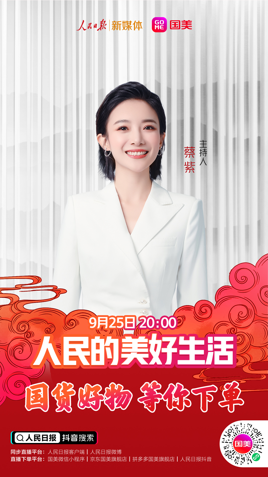 9月25日(周五)晚20點(diǎn),鎖定人民日報(bào)抖音號、國美商城抖音號、國美微信小程序、國美京東旗艦店、國美拼多多旗艦店,關(guān)注直播,國貨好物,等你下單!人民的美好生活,不能少了你?。ǔ\娖剑?/p>