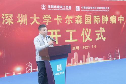 劉文作表態(tài)發(fā)言,中建四局作為唯一一家總部設(shè)在粵港澳大灣區(qū)的主力工程局,將嚴格按照深圳市工務(wù)署相關(guān)要求,發(fā)揚艱苦奮斗精神,以高標準、嚴要求的工作態(tài)度,將深圳大學卡爾森國際腫瘤中心項目建設(shè)成優(yōu)質(zhì)工程、精品工程、廉潔工程。