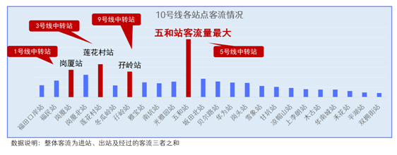 可以看到,10號線客流最大的為五和站。五和站作為10號線與5號線的中轉站,方便大量的5號線中轉人群。