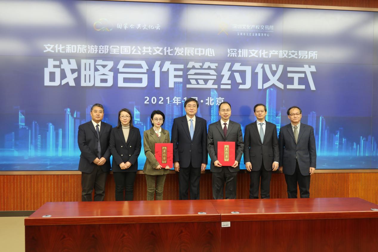 見(jiàn)圳客戶端·深圳新聞網(wǎng)2021年1月13日訊 今日,文化和旅游部全國(guó)公共文化發(fā)展中心(以下簡(jiǎn)稱“發(fā)展中心”)與深圳文化產(chǎn)權(quán)交易所(以下簡(jiǎn)稱“深圳文交所”)在北京簽署戰(zhàn)略合作協(xié)議。文化和旅游部黨組成員、副部長(zhǎng)張旭出席并見(jiàn)證簽約儀式。發(fā)展中心主任白雪華主持簽約儀式。發(fā)展中心副主任尹壽松與深圳文交所總經(jīng)理助理、深圳市文化金融服務(wù)中心常務(wù)副主任王曉銳簽署戰(zhàn)略合作協(xié)議。文化和旅游部公共服務(wù)司副司長(zhǎng)朱渤、國(guó)際交流與合作局副局長(zhǎng)鄭浩,以及簽約單位相關(guān)人員參加簽約儀式。