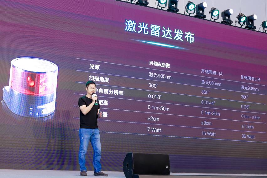 接下來進入到發(fā)布會重磅內(nèi)容環(huán)節(jié),首先,勱微機器人CEO陳文成在會上宣布了勱微聯(lián)合興頌研發(fā)的激光雷達,這款激光雷達具有優(yōu)異的性能,即使在5%反射率的環(huán)境下,依然可以有50m的檢測距離,同時還具備非常穩(wěn)定的持續(xù)輸出,且精度保持在±2mm,較同行的±10mm更精準(zhǔn)。