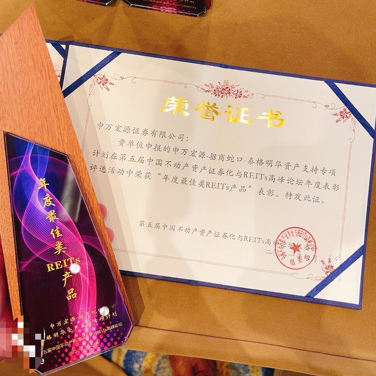 與招商蛇口申報基礎(chǔ)設(shè)施公募REITs同時,由中國房地產(chǎn)業(yè)協(xié)會聯(lián)合中國REITs聯(lián)盟等主辦的“第五屆中國不動產(chǎn)資產(chǎn)證券化與REITs高峰論壇”上,憑借申萬宏源-招商蛇口-泰格明華資產(chǎn)支持專項(xiàng)計劃,招商蛇口獲評為“最佳原始權(quán)益人”,泰格明華項(xiàng)目獲得“年度最佳類REITs產(chǎn)品”獎項(xiàng)。