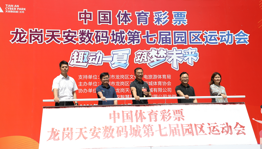 本屆運動會以“趣動一夏筑夢未來”為主題,由深圳市龍崗區(qū)文化廣電旅游體育局支持,深圳市龍崗區(qū)天安數(shù)碼城體育協(xié)會主辦,深圳市龍崗天安數(shù)碼新城有限公司、深圳天安智慧園區(qū)運營有限公司龍崗分公司協(xié)辦。深圳市龍崗區(qū)文化廣電旅游體育局副局長李震、龍崗天安數(shù)碼城副總經理陳文鑫、龍崗區(qū)文化廣電旅游體育局體育事業(yè)促進科副科長任翠華、天安智慧園區(qū)運營有限公司總經理助理龍崗分公司總經理梁義榮、龍崗天安數(shù)碼城產業(yè)事業(yè)部總監(jiān)白麗等領導嘉賓為本屆運動會推桿啟動開幕。