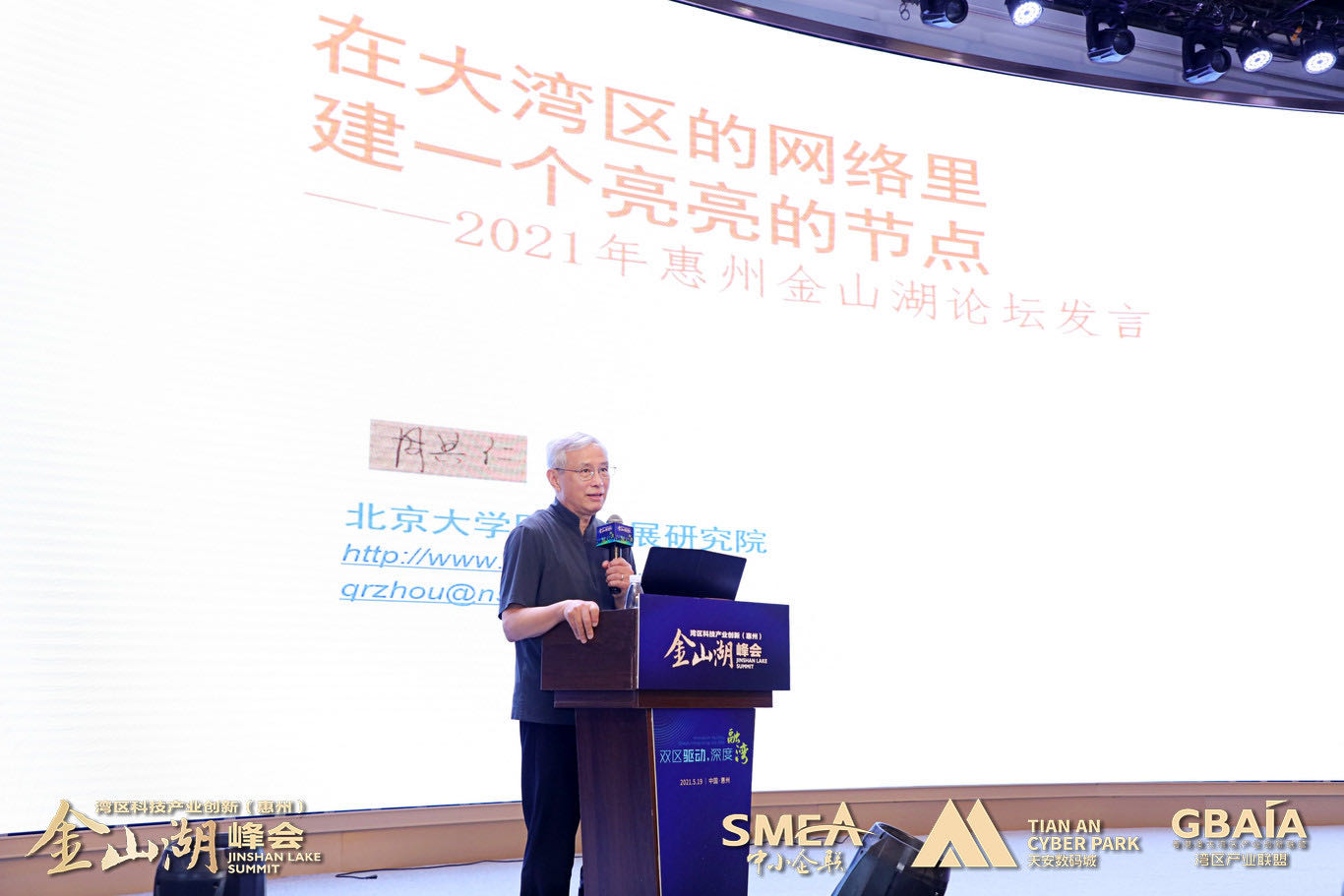北京大學(xué)博雅資深講座教授周其仁進(jìn)行題為《在大灣區(qū)的網(wǎng)絡(luò)里建一個(gè)亮亮的節(jié)點(diǎn)》的主旨演講