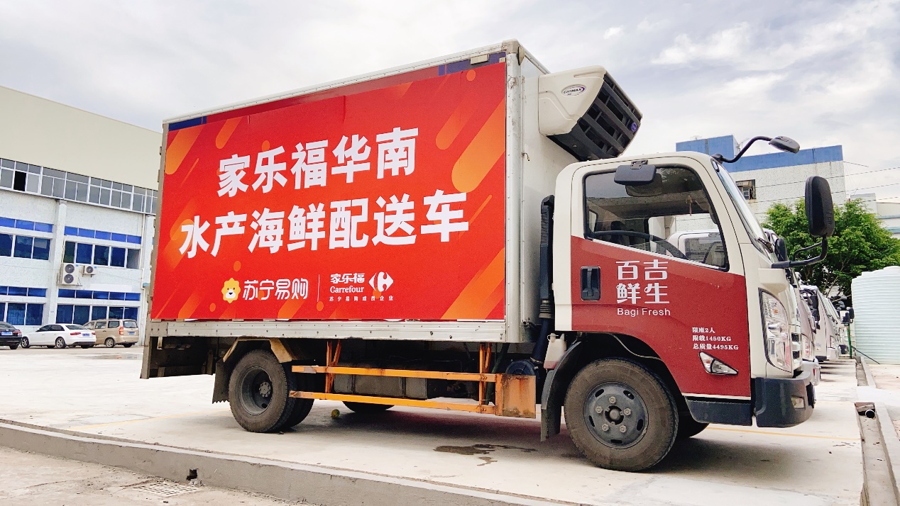 (圖:蘇寧家樂(lè)福水產(chǎn)海鮮配送車(chē)把鮮活海鮮從山河湖海送到百姓餐桌)