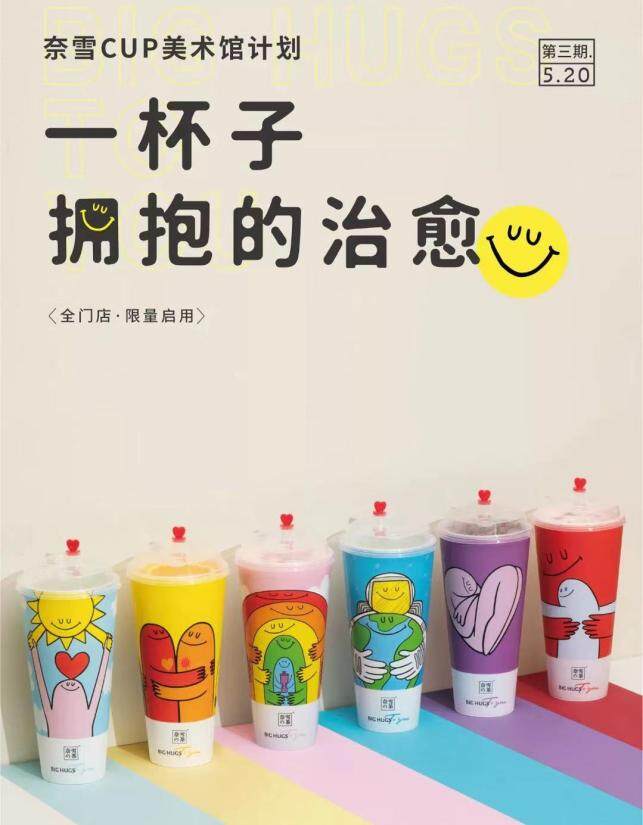 沒(méi)有財(cái)大氣粗的“品牌集郵”,也沒(méi)有投機(jī)取巧的抖機(jī)靈,奈雪似乎一直都深諳情感營(yíng)銷的法門,過(guò)往也不乏優(yōu)質(zhì)案例。筆者印象最深的是“CUP美術(shù)館計(jì)劃”中的“瑞獸杯”和“抱抱杯”。前者是在2020與2021新舊年相交之際推出的,以茶飲杯為載體推出六款意頭極好的瑞獸,寓意“瑞獸相伴時(shí)來(lái)運(yùn)轉(zhuǎn)”,與消費(fèi)者新年新氣象的希冀不謀而合。