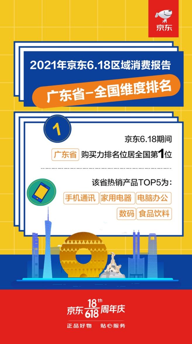 讀特客戶端·深圳新聞網(wǎng)2021年6月18日訊 (記者 田志強(qiáng))2021“京東618”18周年慶,你有在京東買到自己心儀的商品嗎?這可是抄底式購物的最佳時機(jī)。不過,也不要只顧著看自己的,其實(shí)全國各個省份的消費(fèi)情況也十分有趣。里面包含了大量的信息,這一次,我們就來揭秘,廣東省在本屆618中的表現(xiàn)。