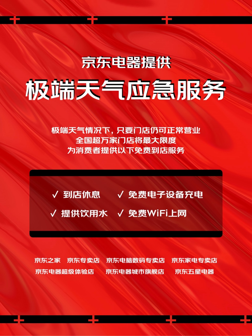 京東電器第一時間推出了極端天氣應(yīng)急服務(wù),聯(lián)動當(dāng)?shù)厝钥烧I業(yè)的京東之家、京東專賣店、京東電腦數(shù)碼專賣店等線下門店,為市民提供汛情避險場所和應(yīng)急服務(wù)。未來在遇到極端天氣的情況下,京東電器在全國的線下門店,包括京東之家、京東專賣店、京東電腦數(shù)碼專賣店、京東家電專賣店、京東電器超級體驗店、京東電器城市旗艦店、京東五星電器等門店只要仍可正常營業(yè),將最大限度為附近的消費者提供到店休息、飲用水、電子設(shè)備充電、 WiFi上網(wǎng)等免費應(yīng)急服務(wù)。