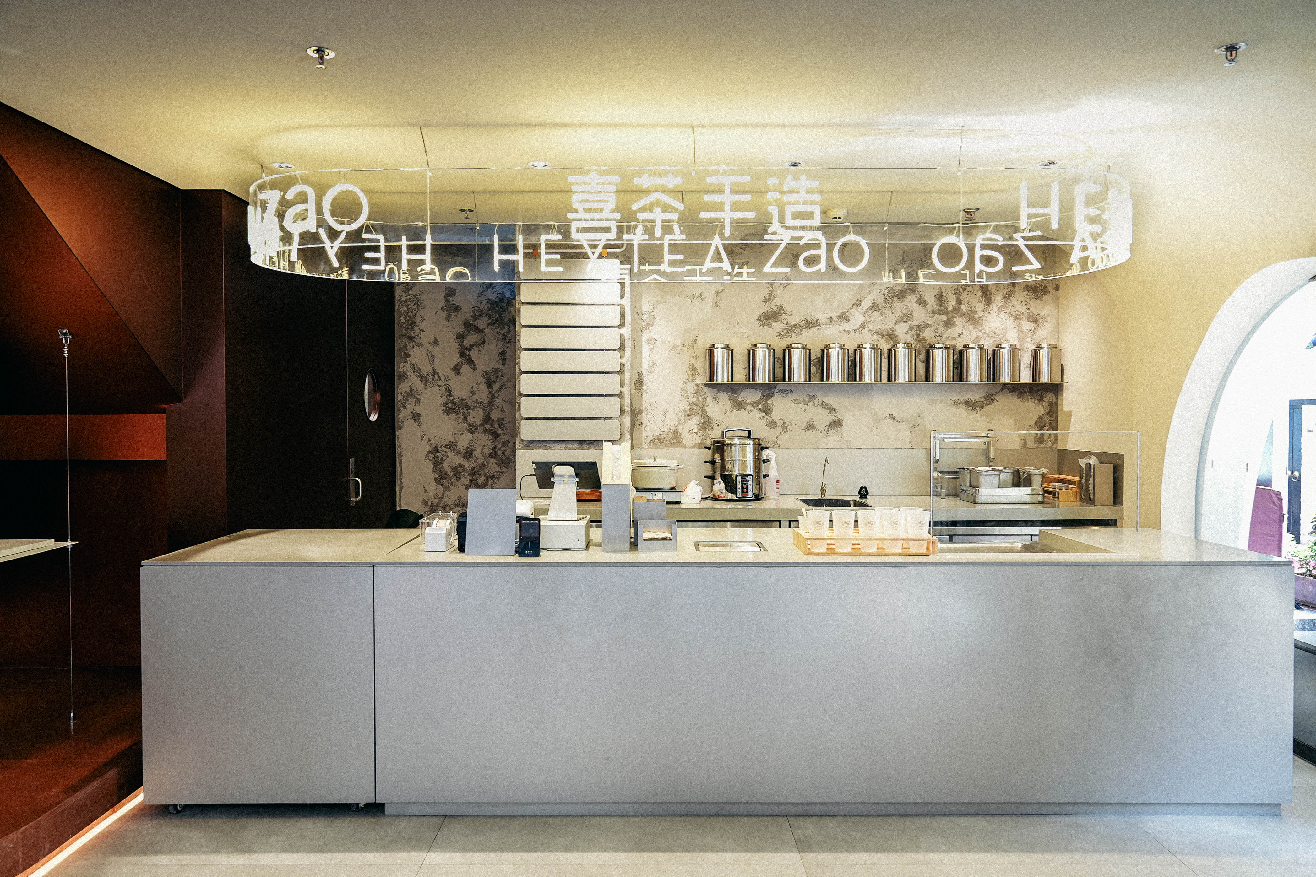 走進(jìn)喜茶深圳壹方天地C區(qū)店,通透的全落地玻璃外立面,讓藍(lán)天白云似乎觸手可及;渾然一體的圓潤(rùn)吧臺(tái),讓整個(gè)空間更為純粹;橙白漸變的門店主色調(diào),為深圳增添了一份溫柔的秋意。門店整體布局采用了圍合式布局,圍繞中心的水吧,從外立面到客區(qū)桌椅的布置都以圓弧形態(tài)進(jìn)行圍合,隨性且愜意。