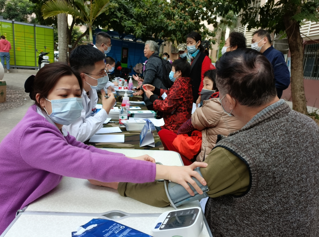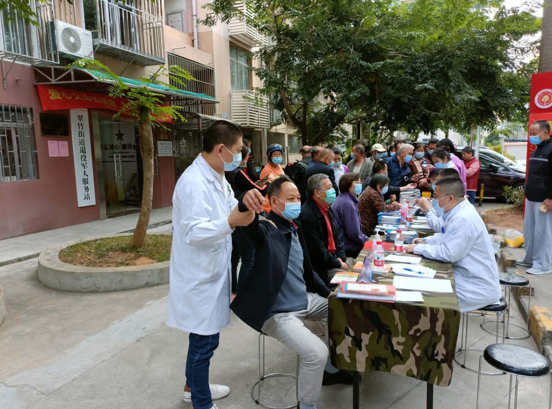12月19日上午,深圳市人民醫(yī)院疼痛科11名專家與護(hù)士攜帶血壓計(jì)、血糖儀、聽診器、理療儀等儀器到街道退役軍人服務(wù)站開展“愛心義診送健康,為民服務(wù)暖人心”關(guān)愛退役軍人義診活動。為防范疫情風(fēng)險(xiǎn),服務(wù)站將健康服務(wù)分區(qū)域并安排工作人員查驗(yàn)健康碼、行程碼、測體溫,參與人員須佩戴口罩方能進(jìn)入活動現(xiàn)場。在服務(wù)站門口通風(fēng)處設(shè)置血糖與血壓測量處、專家醫(yī)生坐診處,在老兵活動室開展健康知識講座,在黨建活動室和老兵談心室開展身體理療服務(wù)。所有服務(wù)同時(shí)開展,退役軍人和居民自主決定參與順序,避免扎堆。
