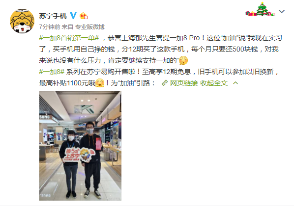 近日,@蘇寧手機(jī)在微博進(jìn)行官宣,蘇寧易購與一加共同簽署5G戰(zhàn)略合作協(xié)議,強(qiáng)強(qiáng)聯(lián)合,推動(dòng)5G普及。