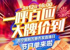 3月12日下午4點,蘇寧“315全民煥新節(jié)萬券齊發(fā)直播日”啟動。