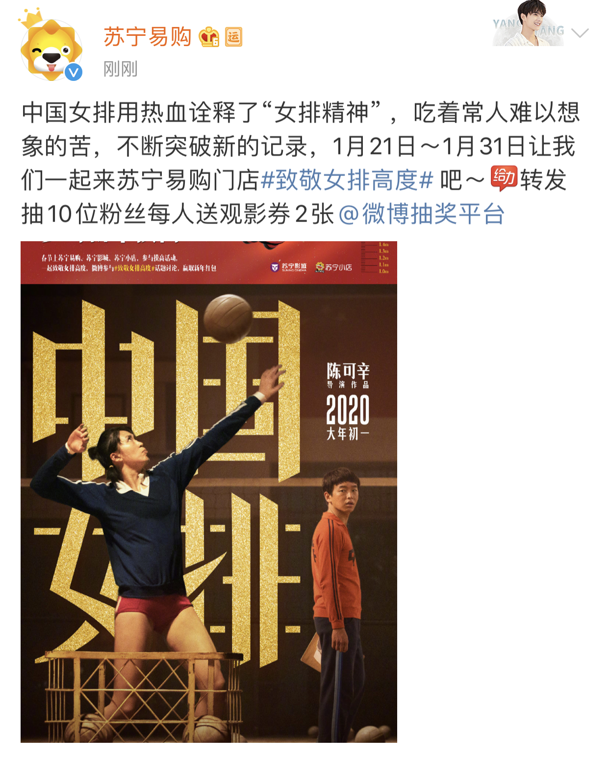 1月17日,蘇寧正式官宣成為電影《中國(guó)女排》的獨(dú)家電商合作平臺(tái)。據(jù)悉,這是年貨節(jié)期間,蘇寧在繼星光大賞、“奇妙年貨吐槽大會(huì)”和《愛情公寓5》后,合作的又一熱門IP。