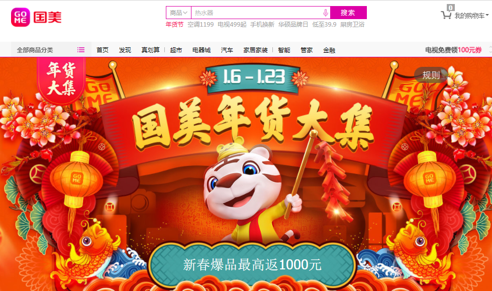 如果在新年家中的電器不給力,過年就會不舒服。辭舊迎新,面對春節(jié)期間的購買新家電,淘汰舊家電的需求,1月6日-24日,國美年貨節(jié)以舊換新活動開啟,舊貨換年貨至高抵800元。