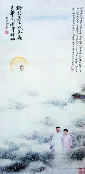 吳湖帆自繪的他和潘靜淑在梅花叢中的《梅影三生成眷屬》吳元京供圖