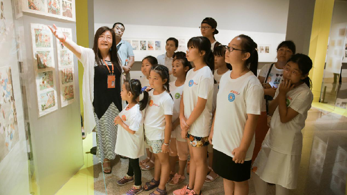 開(kāi)營(yíng)當(dāng)天,孩子們還參觀了中國(guó)美術(shù)館《故事繪》連環(huán)畫(huà)展,中國(guó)美術(shù)館志愿者教員為環(huán)衛(wèi)子女介紹了中國(guó)美術(shù)館的歷史以及文明觀展禮儀。