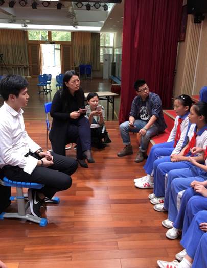 學(xué)生認(rèn)真地跟著王翔云老師拍打節(jié)奏唱歌