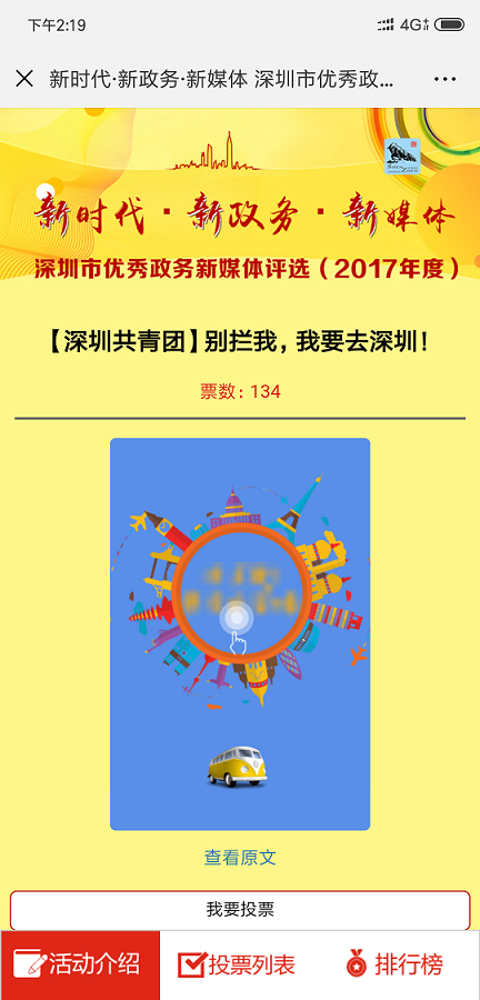 作為中國"最互聯(lián)網(wǎng)城市〃,深圳近年來大力建 設(shè)政務(wù)新媒體平臺矩陣,不斷建立健全工作機制,搭 建起為市民服務(wù)的新渠道、新平臺,涌現(xiàn)出許多優(yōu)秀 的政務(wù)新媒體。廣大市民網(wǎng)友,有哪些政務(wù)微信么, 讓你"欲罷不能〃,有哪位小編讓你〃刻骨銘心〃, 有哪些作品讓你"秒轉(zhuǎn)秒贊"?請為他們投上寶貴一 票吧!本次投票活動作為"新時代新政務(wù)備體"—— 深圳市優(yōu)秀政務(wù)新媒體評選(2017年度)活動的重要 組成部分,其結(jié)果將作為專家評審類獎項評選的重要 參考細(xì),權(quán)重占比50%。