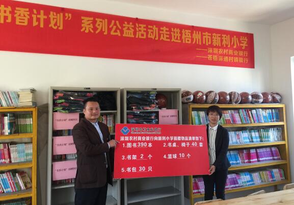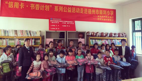 2017年,由深圳農(nóng)商行發(fā)起的“信用卡公益計劃·書香圖書室”捐贈活動,深入走進(jìn)廣西壯族自治區(qū)的偏遠(yuǎn)山區(qū),為當(dāng)?shù)剌^為貧困的扶典小學(xué)、新利小學(xué)、林旺小學(xué)和育才小學(xué)帶來溫暖和鼓勵。本次活動共捐贈各類圖書1899冊、文體用品130套、書包590個、書桌書架椅子42套,有效地幫助這四所小學(xué)建設(shè)充實圖書室,為孩子們創(chuàng)造良好的閱讀環(huán)境,讓更多孩子在閱讀中滋養(yǎng)向上生長的力量。