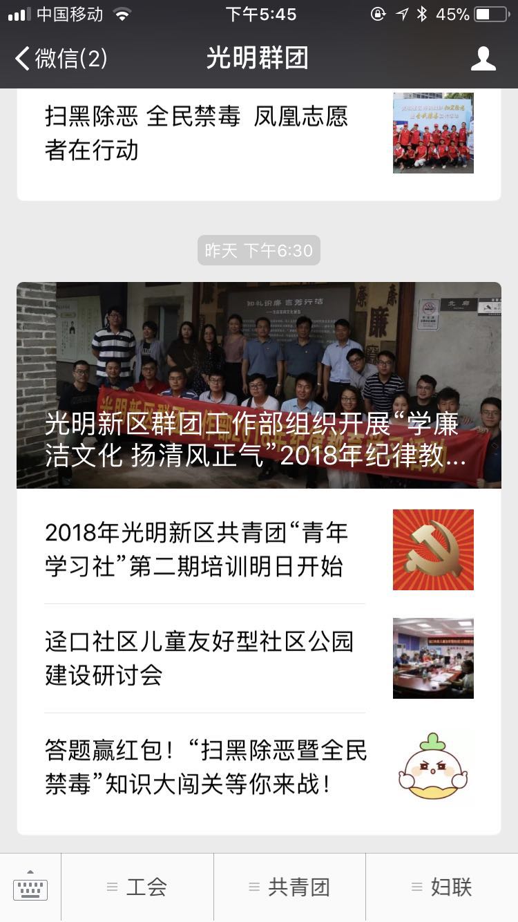 案例介紹:深圳市光明新區(qū)群團(tuán)工作部公眾賬號(hào),包括光明工會(huì)、光明團(tuán)委、光明婦聯(lián),發(fā)布新聞資訊、提供便捷服務(wù)。