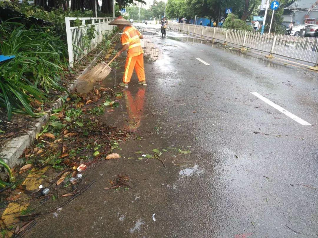 據(jù)統(tǒng)計(jì),截至17日下午6時(shí),福永街道共出動(dòng)搶險(xiǎn)人員770人,出動(dòng)車輛45臺(tái),清除路面障礙130余處,疏通道路邊溝橋涵70余處,修復(fù)交通設(shè)施45處,連夜貫通、清洗主干道路33條,扶正樹木283棵,清理枝葉約215.5噸、垃圾約198.5噸,修復(fù)垃圾桶630個(gè)、果皮箱330組,修復(fù)路燈15桿。