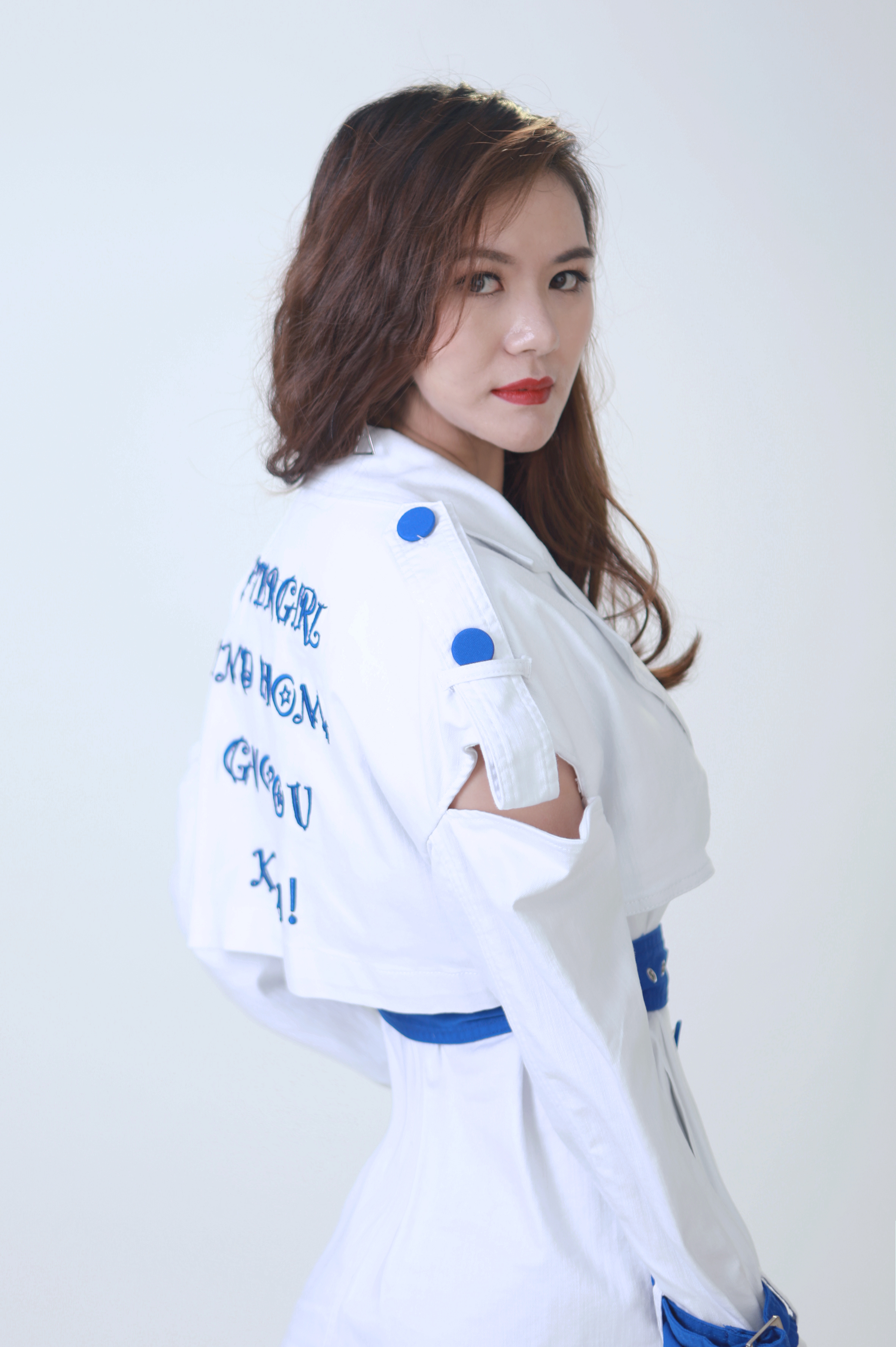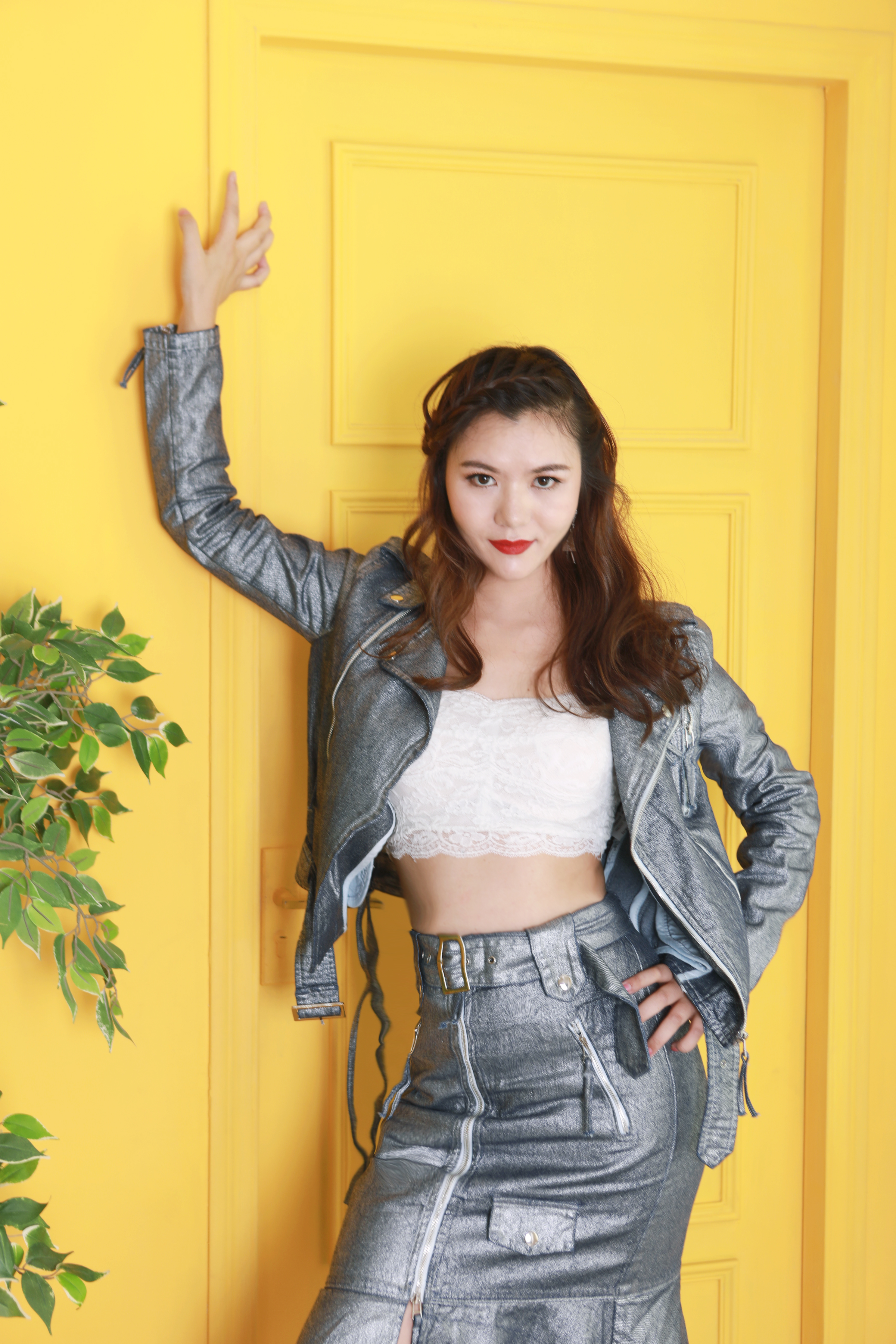 服裝師給小田田選擇了一套金屬色澤的牛仔夾克&半裙,金屬材質(zhì)和夾克讓牛仔更顯霸氣,溫柔的半裙又調(diào)和了剛硬感,剛中帶柔的感覺,讓剛才甜甜的小田田又御姐了起來呢。