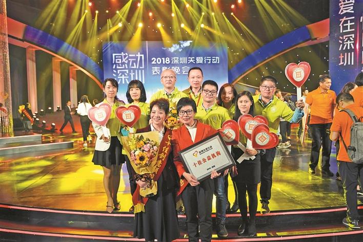 ▲2018年3月28日,房濤(前排右一)在深圳關(guān)愛行動(dòng)表彰晚會(huì)現(xiàn)場(chǎng)。