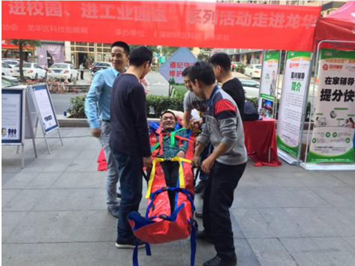深圳市沃邦科技有限公司則給市民開(kāi)展了急救新科技課堂。在活動(dòng)現(xiàn)場(chǎng),讓市民體驗(yàn)了真空擔(dān)架、真空綁帶和心肺復(fù)蘇機(jī)等急救工具,切身將急救科普知識(shí)傳播給市民,為市民安全保駕護(hù)航。