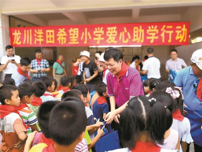 ▲黃爾春參與龍川洋田希望小學(xué)助學(xué)行動(dòng)。