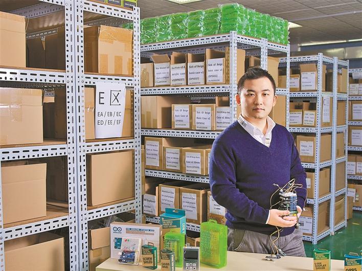 我在大學(xué)甚至更早的時候就深有體會——我有很多想法,但是缺乏必要的技術(shù)去把這個想法實現(xiàn)出來。我在國外的一個開源硬件論壇留言說我的體會,沒想到有那么多創(chuàng)客回饋說有同感,論壇上創(chuàng)客們的積極回應(yīng)讓我看到了商機(jī)。我發(fā)現(xiàn),很多硬件模塊因為創(chuàng)客需要的量少,很多工廠不愿意生產(chǎn)。后來,我想到了在國際創(chuàng)客論壇發(fā)帖征集創(chuàng)客們的需求,再到國內(nèi)電子市場搜集硬件加工后發(fā)給創(chuàng)客的點子。于是,我便做起了開源硬件的生意?!盀閯?chuàng)客服務(wù)”,這是我創(chuàng)業(yè)的最初目標(biāo)。