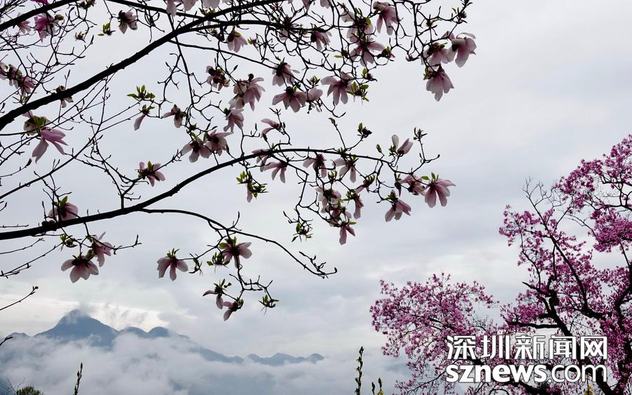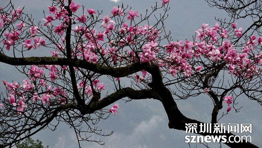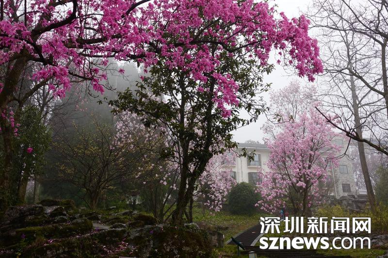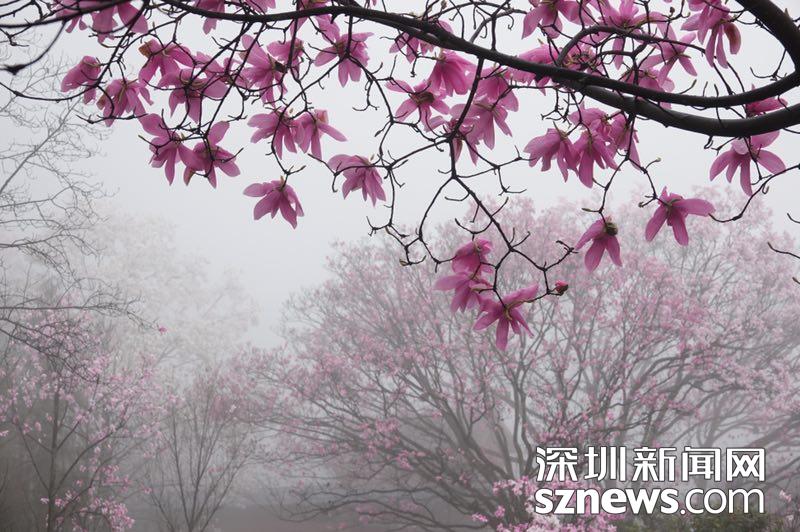 雨霧濛濛之中觀賞盛開的辛夷花,宛若置身仙境......李仁奇 攝