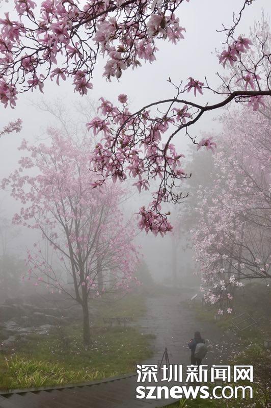 北川藥王谷,雨霧濛濛之中觀賞盛開的辛夷花,宛若置身仙境......李仁奇 攝