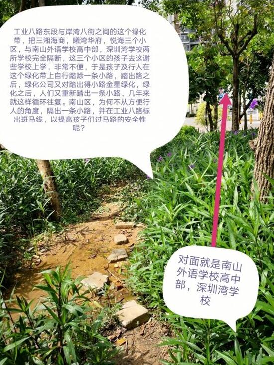 南山區(qū)蛇口街道辦就此事回應(yīng)稱,街道已要求園林綠化公司對該處加強監(jiān)管,及時補植踩出的空地。同時提醒市民朋友,遵守交通規(guī)則,不要違法穿越綠化帶。在交通部門尚未做好規(guī)劃前,通行沿交通路口斑馬線行走。