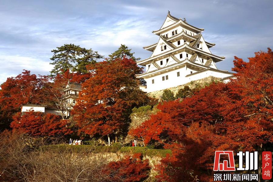 登上海拔354米的八幡山,木造古建筑天守閣下被染紅的楓樹和小城街市盡收眼底。李仁奇攝