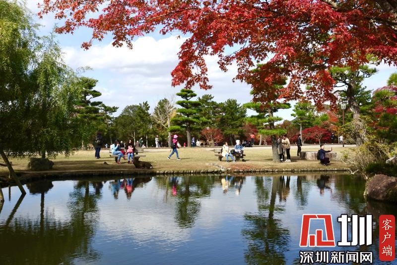 游覽神鹿公園喂飼馴鹿,是奈良觀光的象征性選擇。這里一年四季都游人如織,秋日紅葉映襯下的景觀更是情趣盎然。李仁奇攝