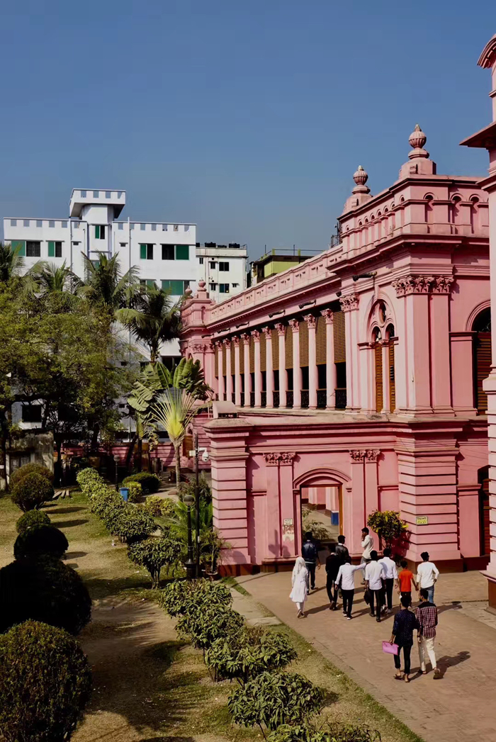 距孟加拉恒河渡口不遠(yuǎn)的地方有一座粉紅色宮殿式的豪華建筑。那是1872年一位名叫阿赫桑曼濟(jì)勒的地主在法國(guó)人留下的倉房基礎(chǔ)上改建的私邸,后來曾在一次龍卷風(fēng)襲擊時(shí)受創(chuàng)。李仁奇 攝