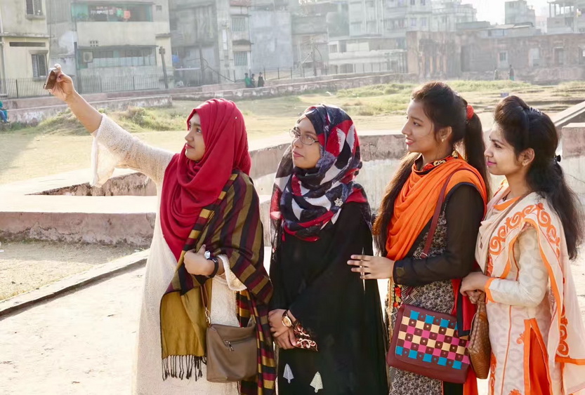 在達(dá)卡幾天時(shí)間里,感覺孟加拉國(guó)盛產(chǎn)美女,加之她們喜歡鮮艷的服飾,一些年輕女性就顯得更加靚麗。李仁奇 攝