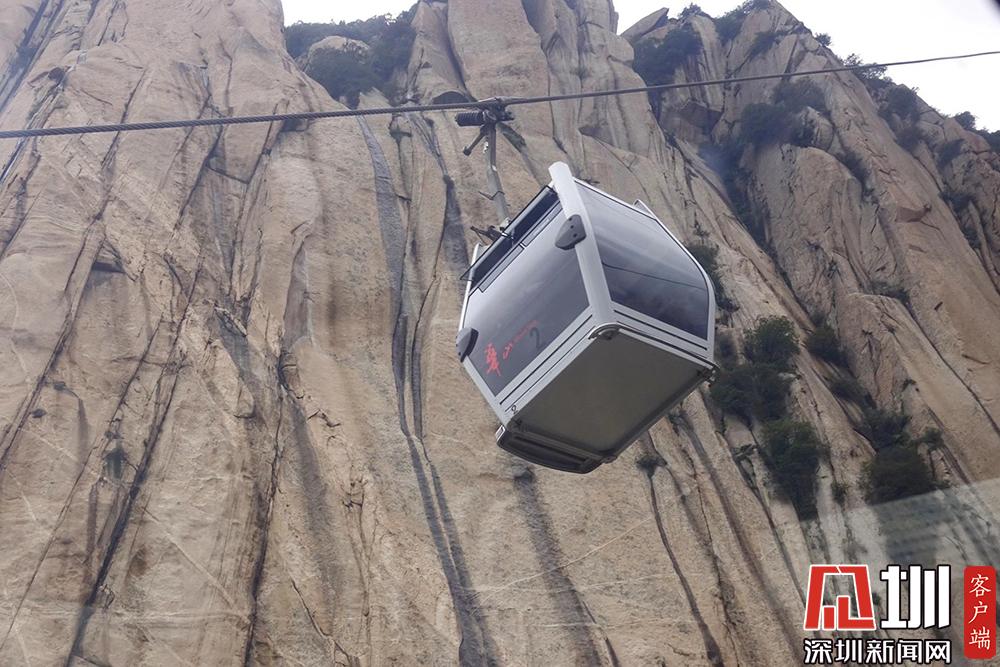 線路斜長4211米,相對高差894米,單向運量1500人/小時。華山索道一覽。李仁奇攝。