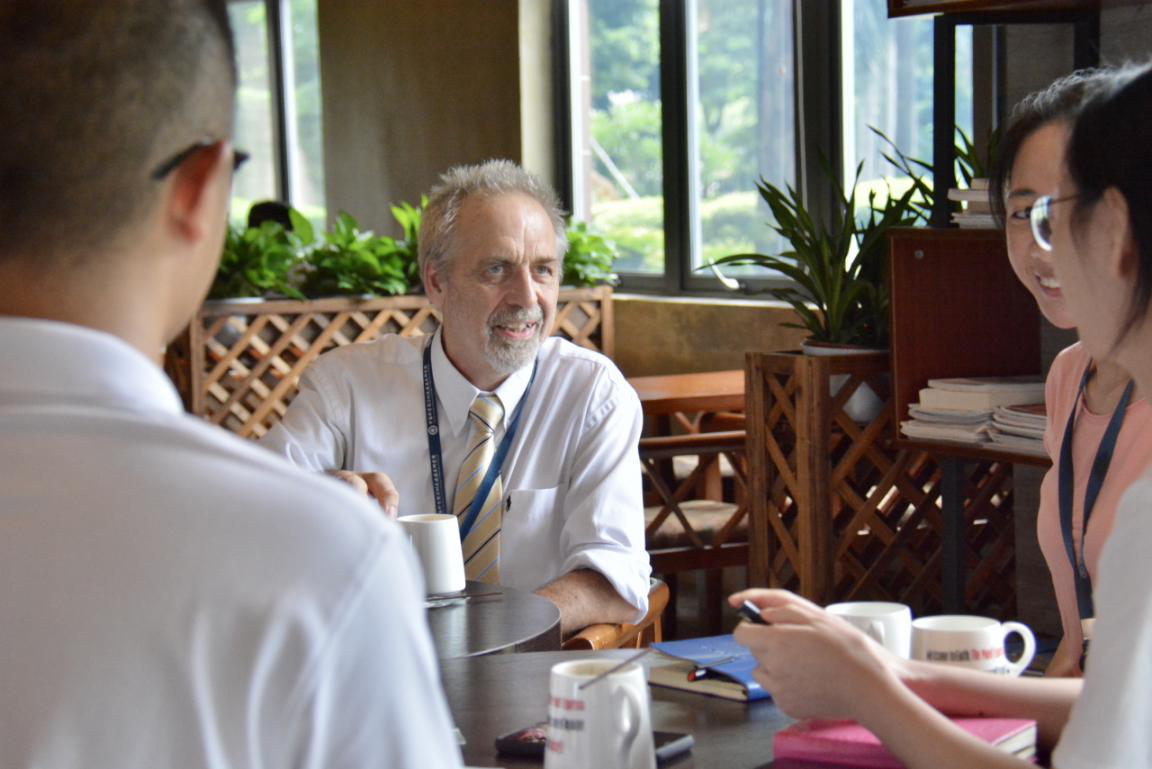 一身深藍色西裝,金色領(lǐng)帶,炯炯有神的目光以及幽默風(fēng)趣的性格,讓他在儒雅中顯得格外平易近人。從英國到北京再到深圳,John Roger Speakman每一次選擇都為了離自己的研究目標(biāo)更進一步。