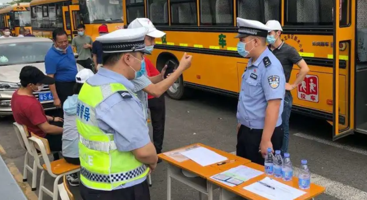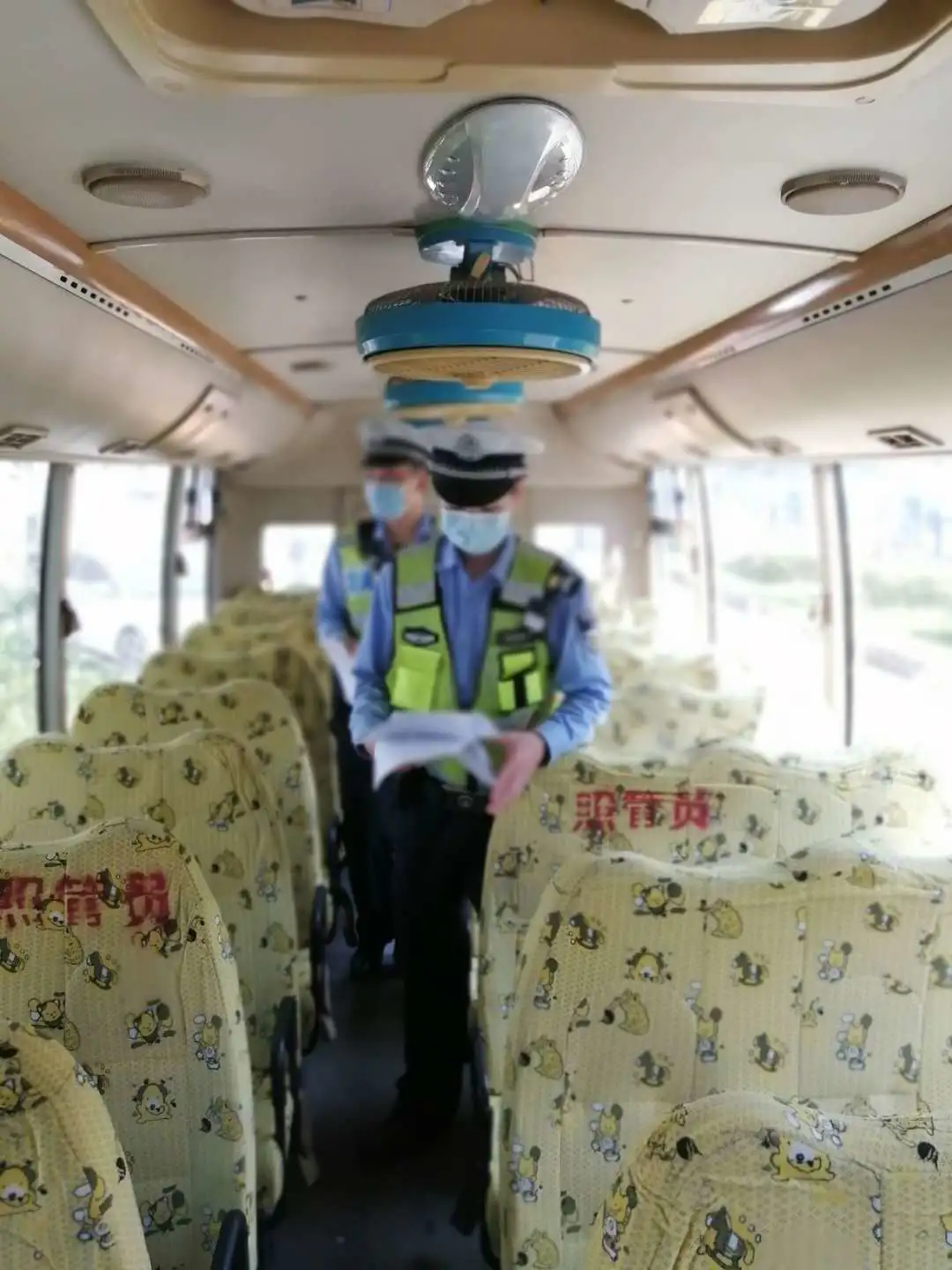 查“四證”(校車許可、駕駛證、交強(qiáng)險、行駛證),重點(diǎn)檢查校車是否為允許使用的2類校車,檢查校車駕駛?cè)耸欠窬邆湫\囻{駛資格;