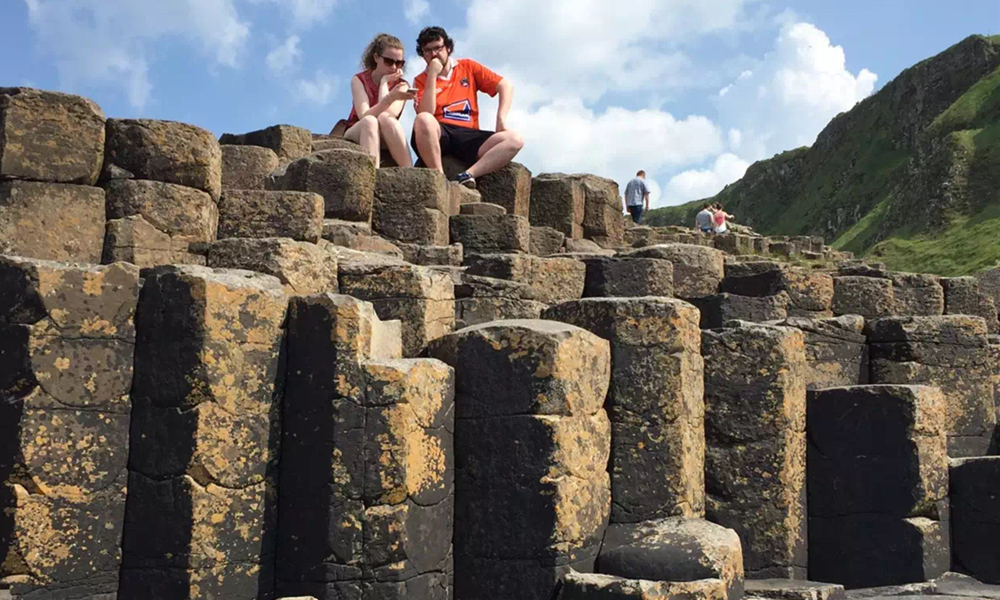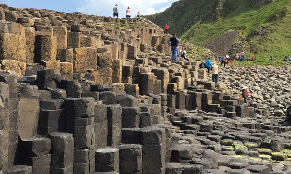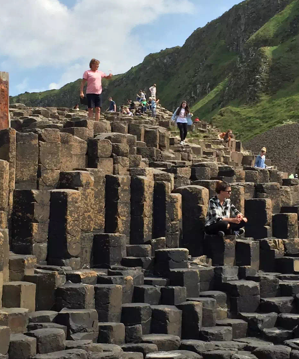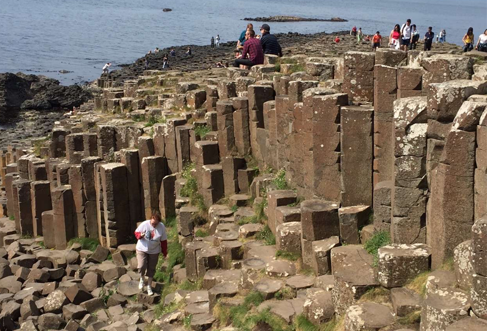 約五千萬年前,在今天蘇格蘭西部內赫布里底群島一線至北愛爾蘭東部火山非常活躍,一股股玄武巖巖熔流從裂隙的地殼中涌出,隨著灼熱的熔巖冷卻收縮,結晶的時候,開始爆裂呈規(guī)則的六邊形形態(tài)。李仁奇 攝