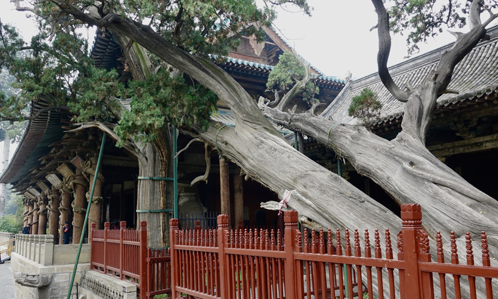 圣母殿左側(cè)的周柏,形似臥龍,俗稱(chēng)“臥龍柏”。李仁奇 攝