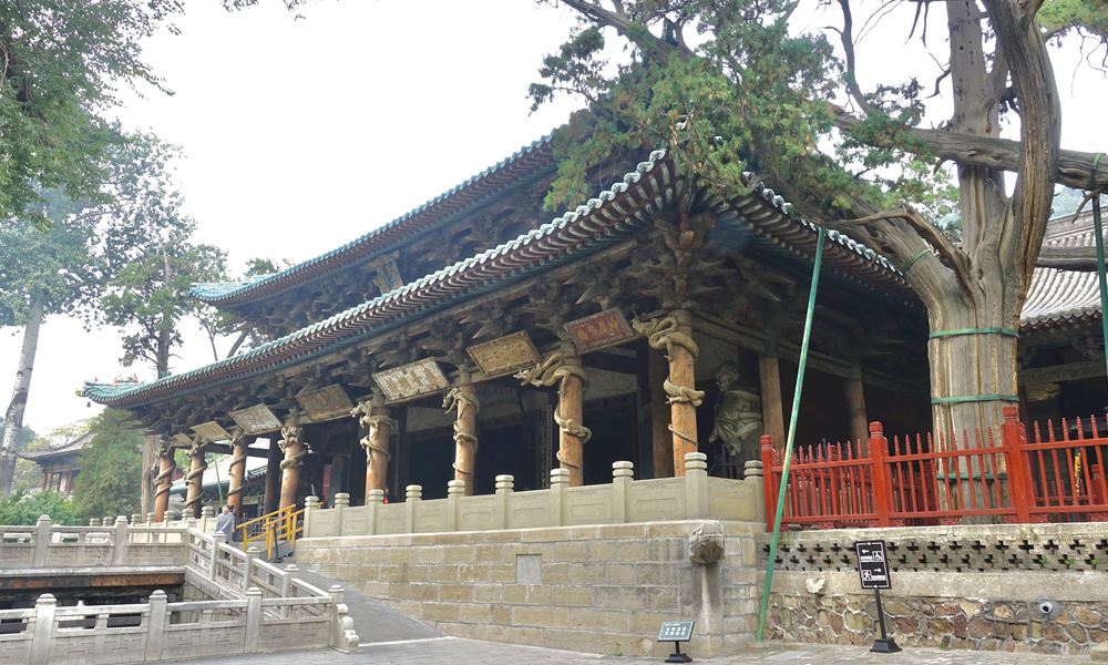 圣母殿前柱上的八條木雕盤(pán)龍。李仁奇 攝