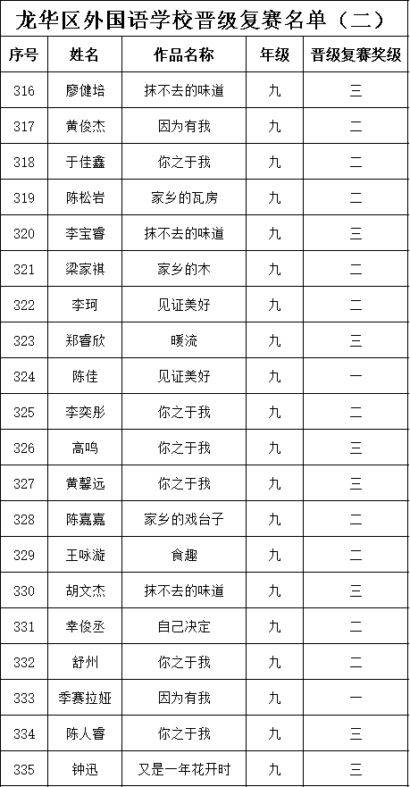 自2021年1月,活動征稿啟動以來,獲得了深圳市廣大中小學(xué)生、教師、文學(xué)愛好者的熱烈響應(yīng)積極參與,吸引了深圳百余所學(xué)校的上萬人關(guān)注報名。現(xiàn)公布龍華區(qū)外國語學(xué)校專場晉級復(fù)賽名單如下:
