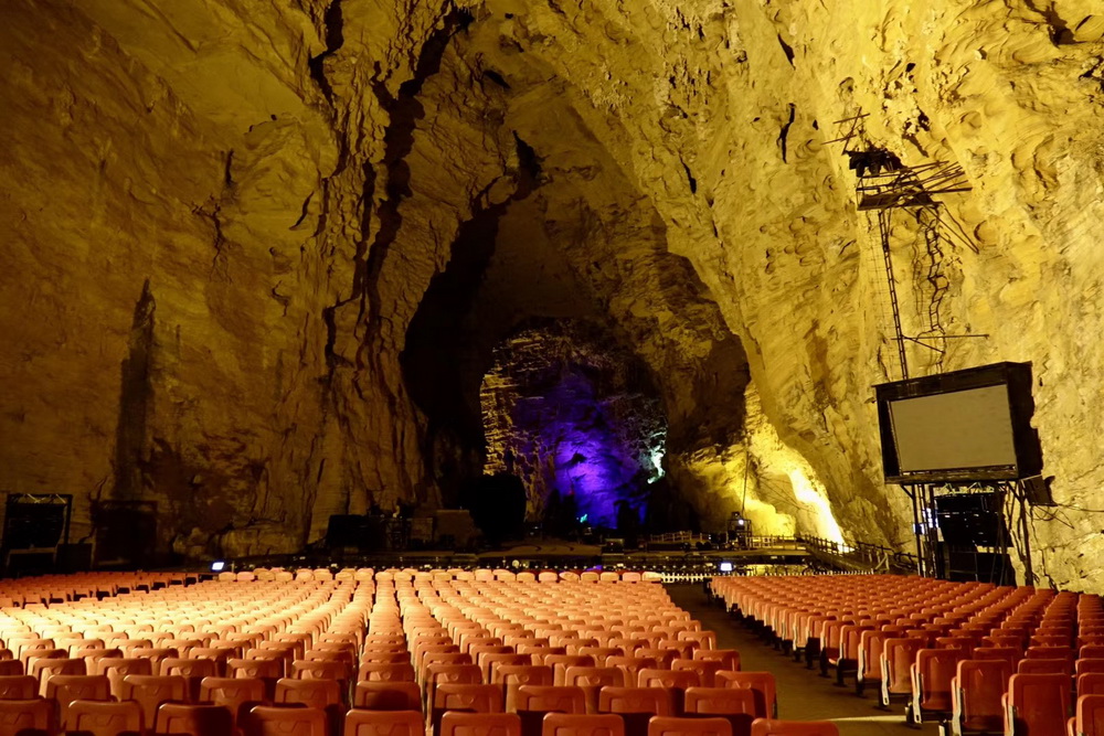 旱洞里現(xiàn)在有兩個劇場,有定時(shí)的激光和歌舞表演。水洞里有地下瀑布10余處。李仁奇 攝