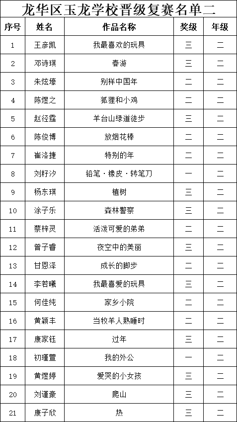 自2021年1月,活動征稿啟動以來,獲得了深圳市廣大中小學(xué)生、教師、文學(xué)愛好者的熱烈響應(yīng)積極參與,吸引了深圳百余所學(xué)校的上萬人關(guān)注報名。現(xiàn)公布龍華區(qū)玉龍學(xué)校專場第二批晉級復(fù)賽名單如下: