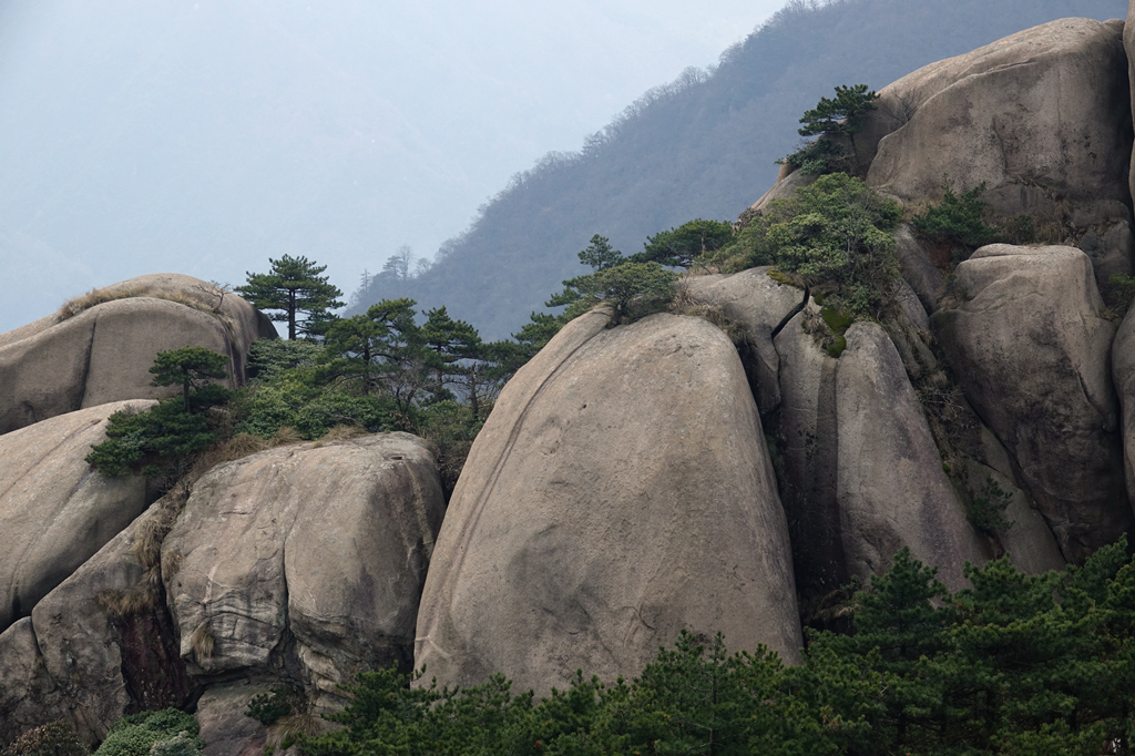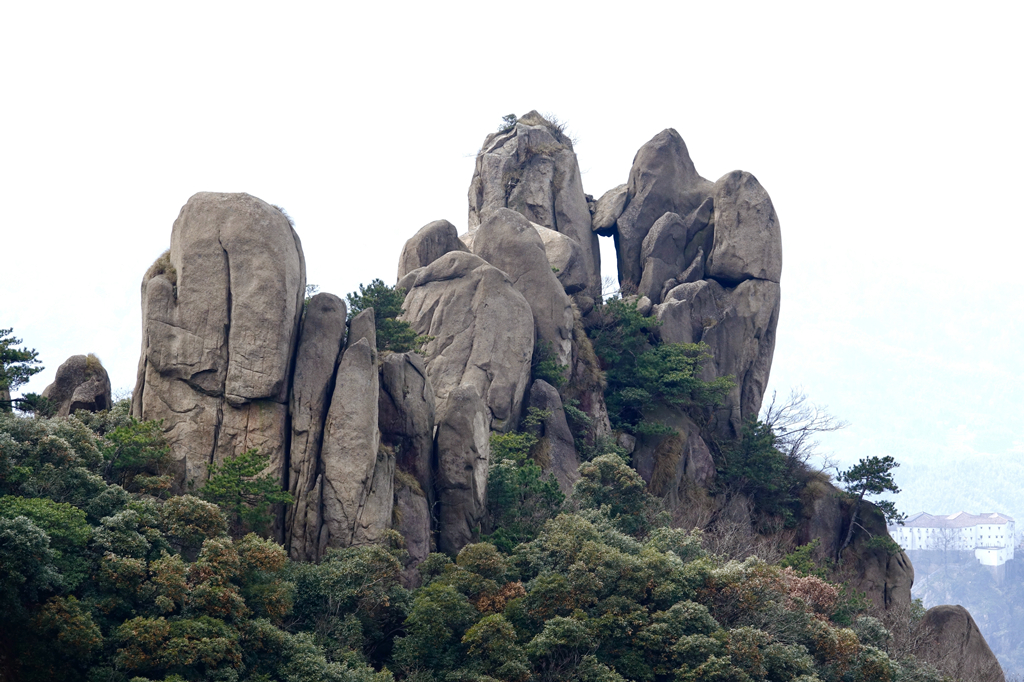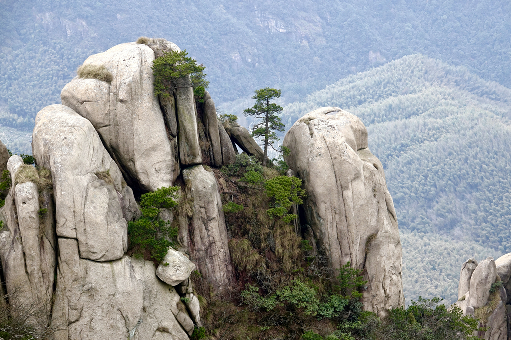 由于其隆起幅度自核心部位向周圍逐漸減小,外圍山地由硬度較花崗巖小的花崗閃長巖和沉積巖組成,易被沖刷蝕低,故整個(gè)九華山體由眾多千姿百態(tài)、高低參差的中山、低山、丘陵和山間盆地等組成。李仁奇 攝